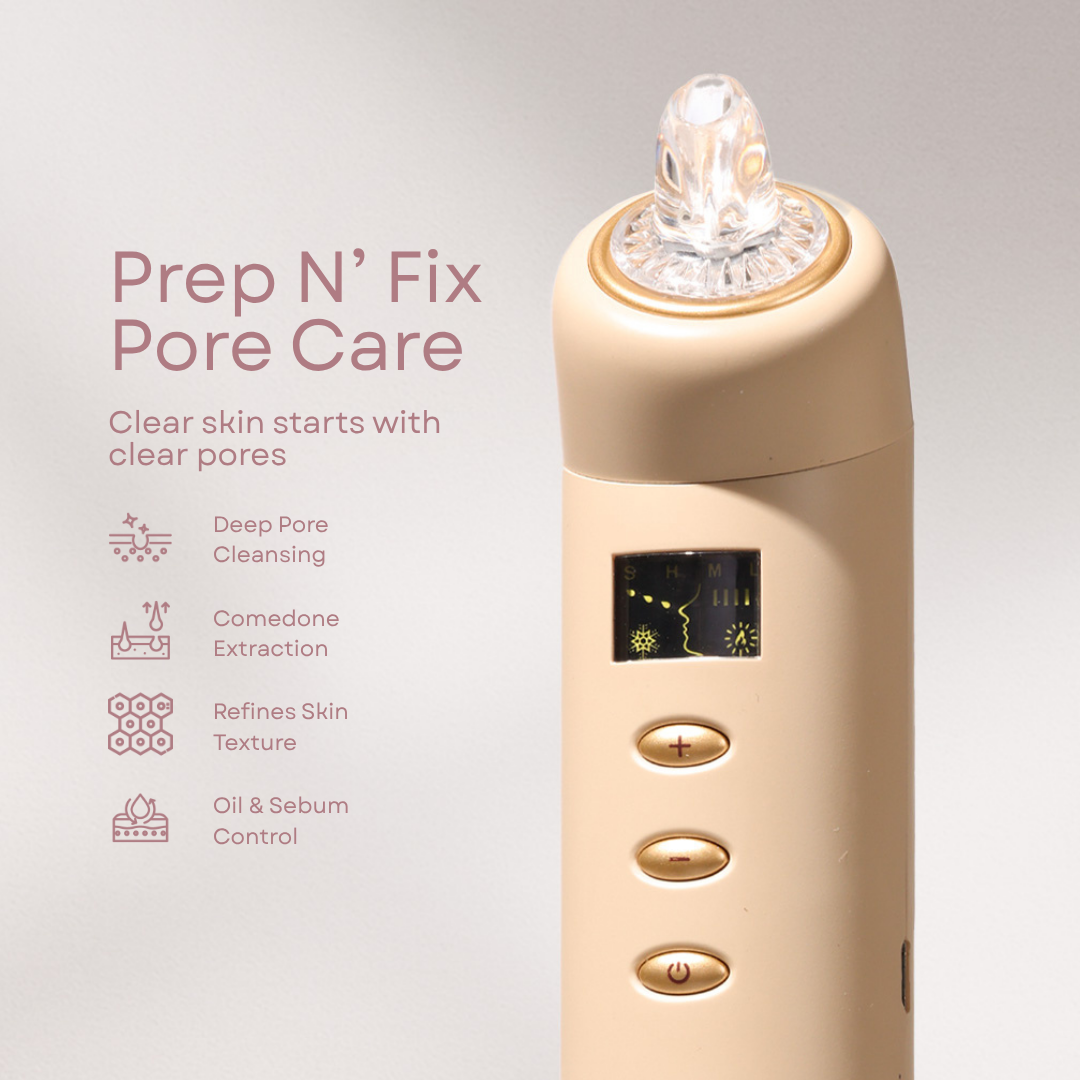 It's time to experience the latest technology with Luxelle Prep n’ Fix Pore Care, a 3-step blackhead remover that revitalizes skin to be firmer, smoother and younger. Prepare and massage your skin with hot compress that open pores, this step can help you get rid of blackheads and dirt more effectively. The blackhead vacuum pore cleaner has a stronger suction capability and deeply cleanses the skin. With four adjustable suction level (L) Low - for sensitive skin, (M) Medium - for dry skin, (H) High - for normal skin, (S) Super - oily and combination skin, you can easily adjust the most appropriate suction levels for your different skin concern. Reduce redness, swelling, and pain after extraction with its cold compress leaving your skin smooth and relaxed.